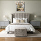Plush headboard brings hotel-level comfort home.